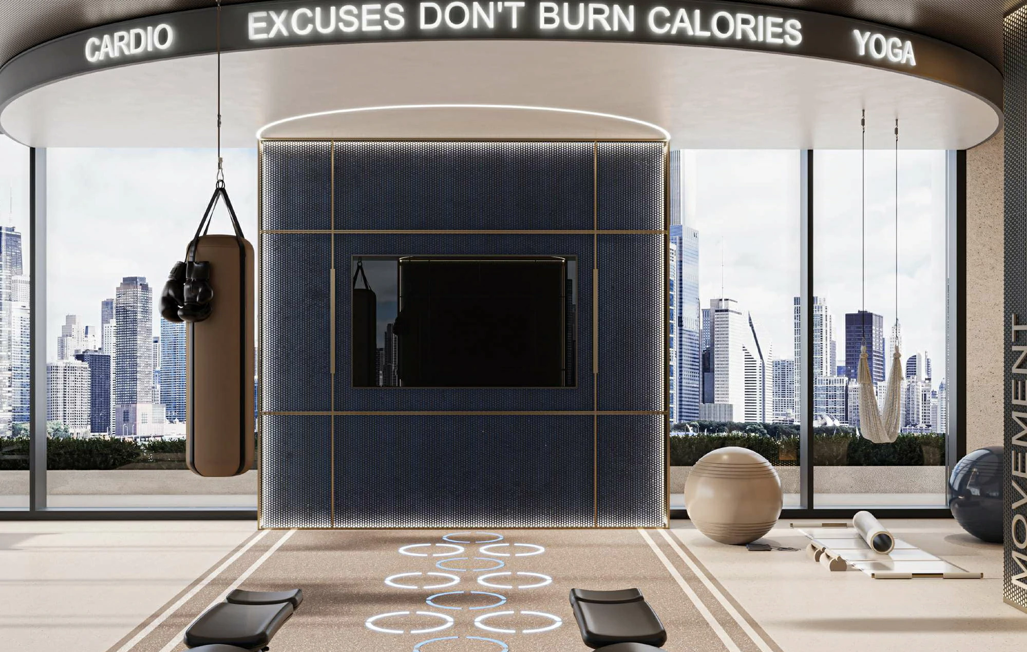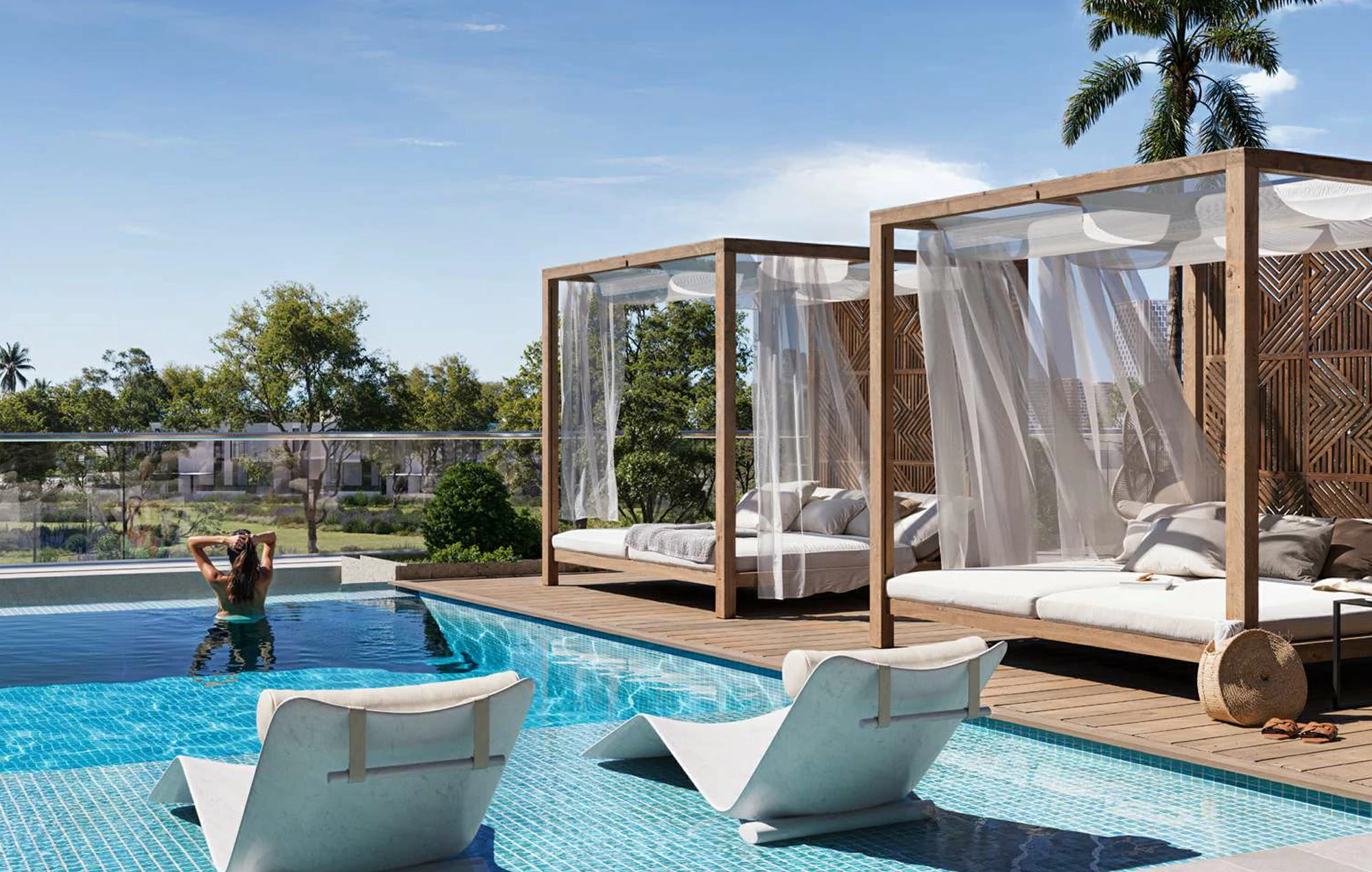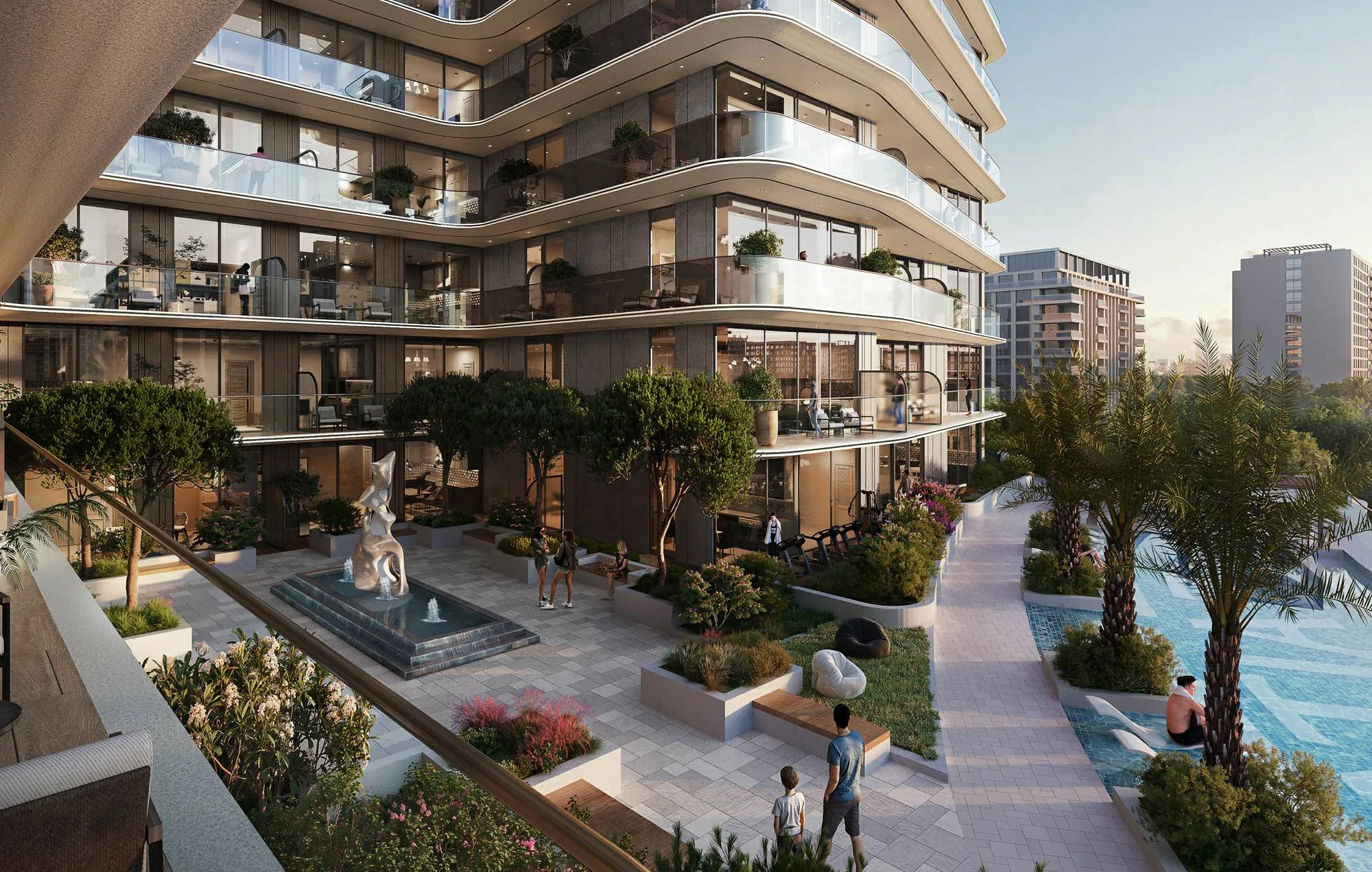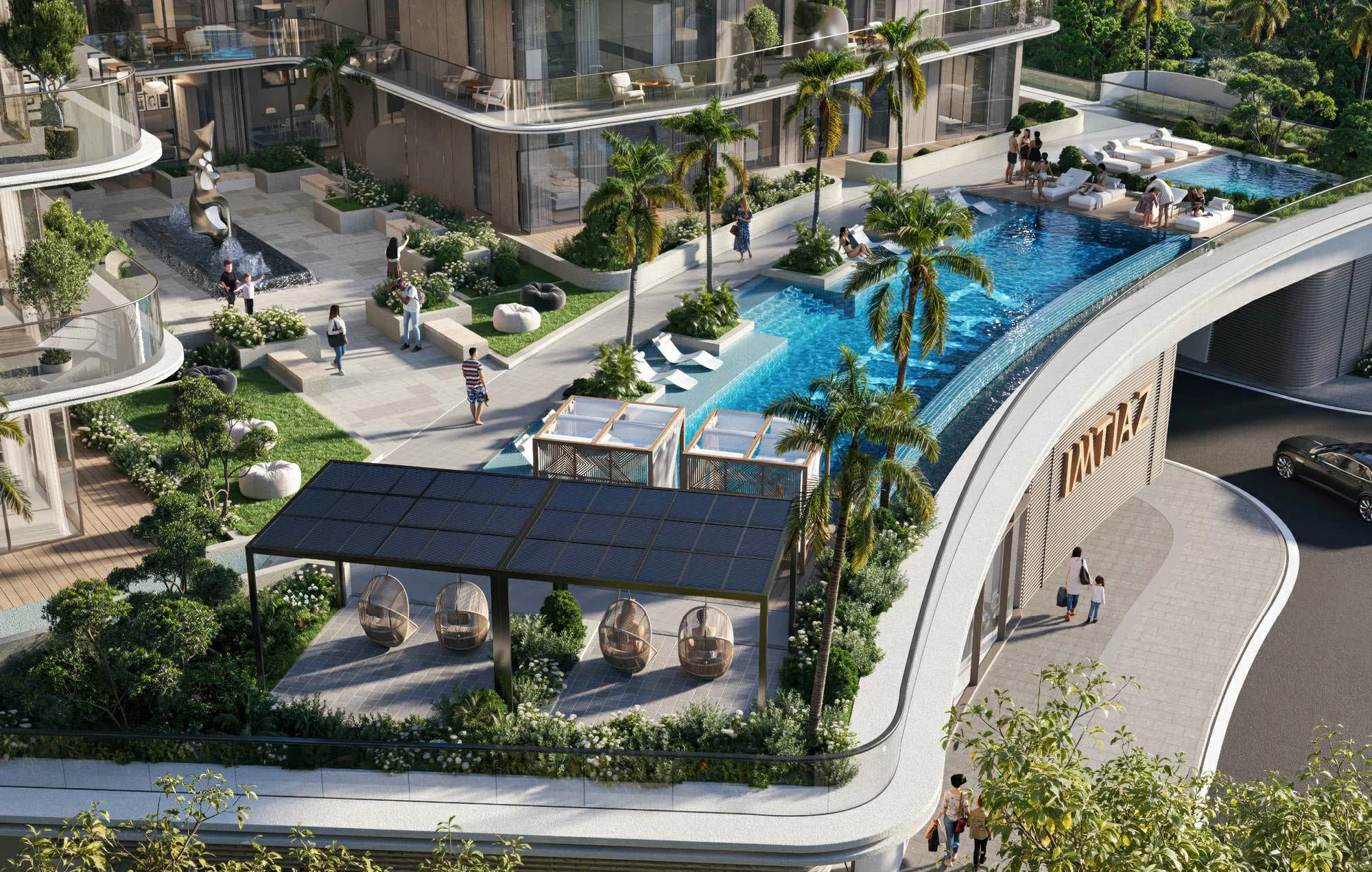 a blend of contemporary architecture and natural surroundings. The development features