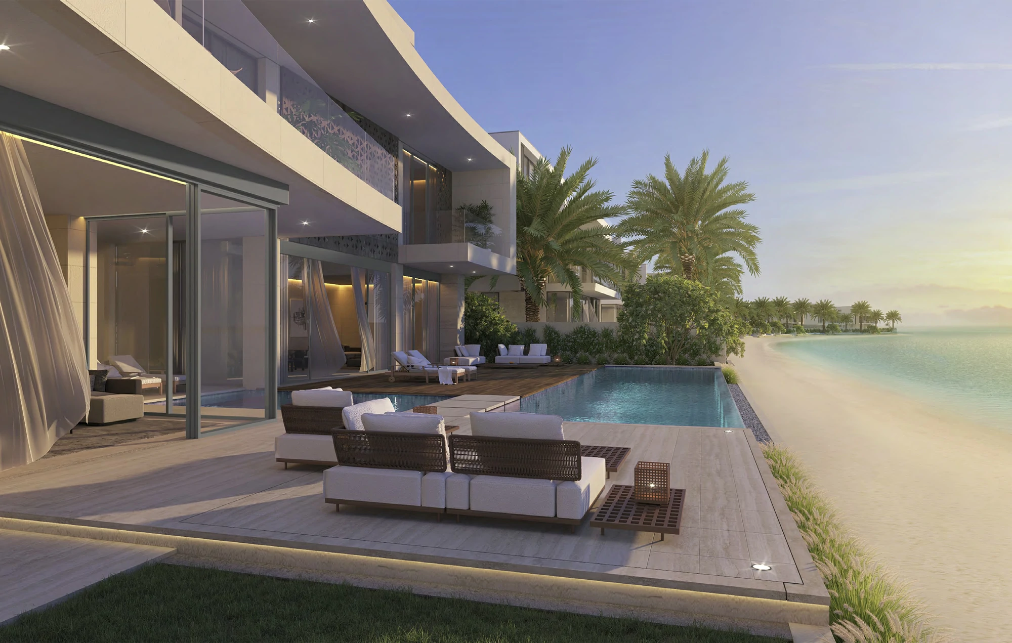 Coral Dune is a refined beachfront residence offering elegant formal spaces, generous family living areas, and a rooftop lounge designed for private entertaining.